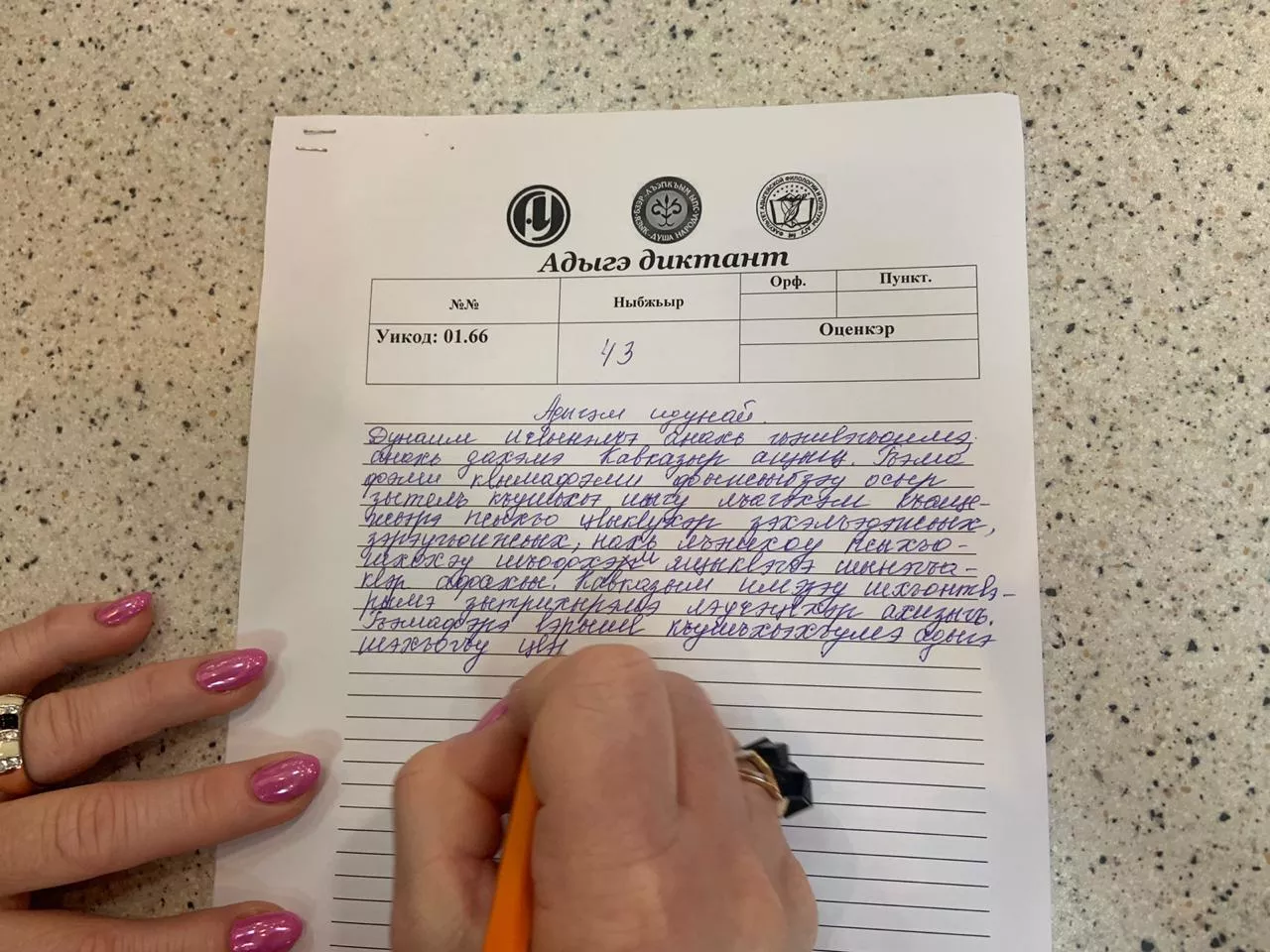 «Акция "Адыгэ диктант" вызвала большой резонанс в обществе. Желающих проверить свои знания письменного адыгейского языка оказалось больше ожидаемого числа участников. Поэтому были задействованы все залы Научной библиотеку АГУ, где проводилась акция. Диктант писали и в аудиториях Адыгейского госуниверситета», — сообщили организаторы.