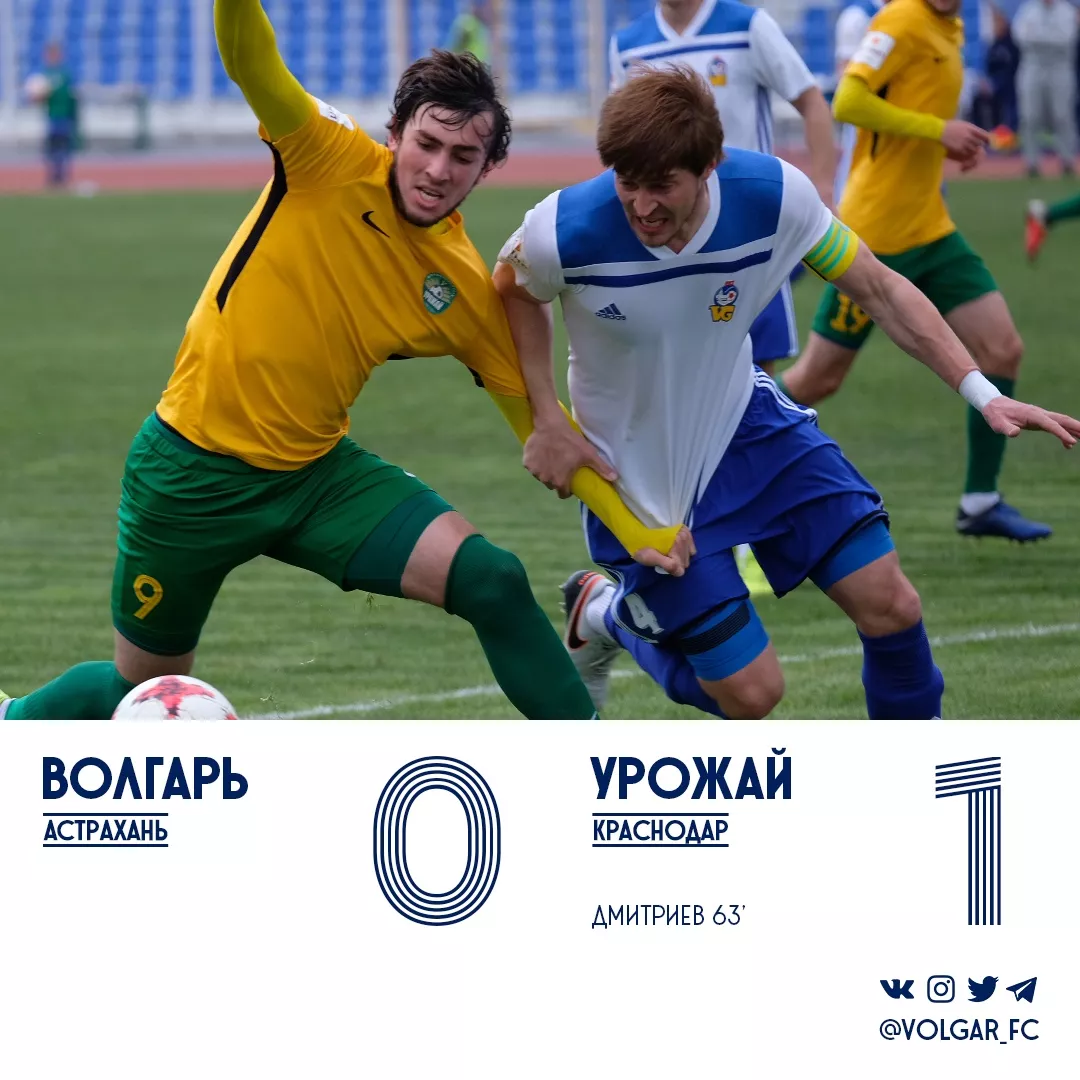 Краснодарский «Урожай» провел выездной матч 19-го тура первенства Профессиональной футбольной лиги с «Волгарем»