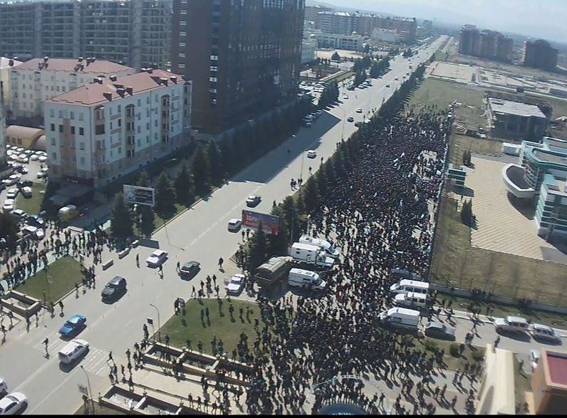 18 марта республиканские власти согласовали митинг в Назрани, однако инициаторы акции добились того, чтобы место мероприятия перенесли в Магас.