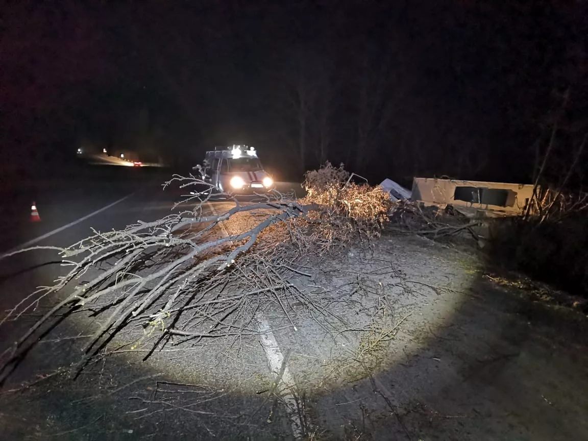 В Туапсинском районе ночью 7 апреля грузовик снес деревья и перевернулся