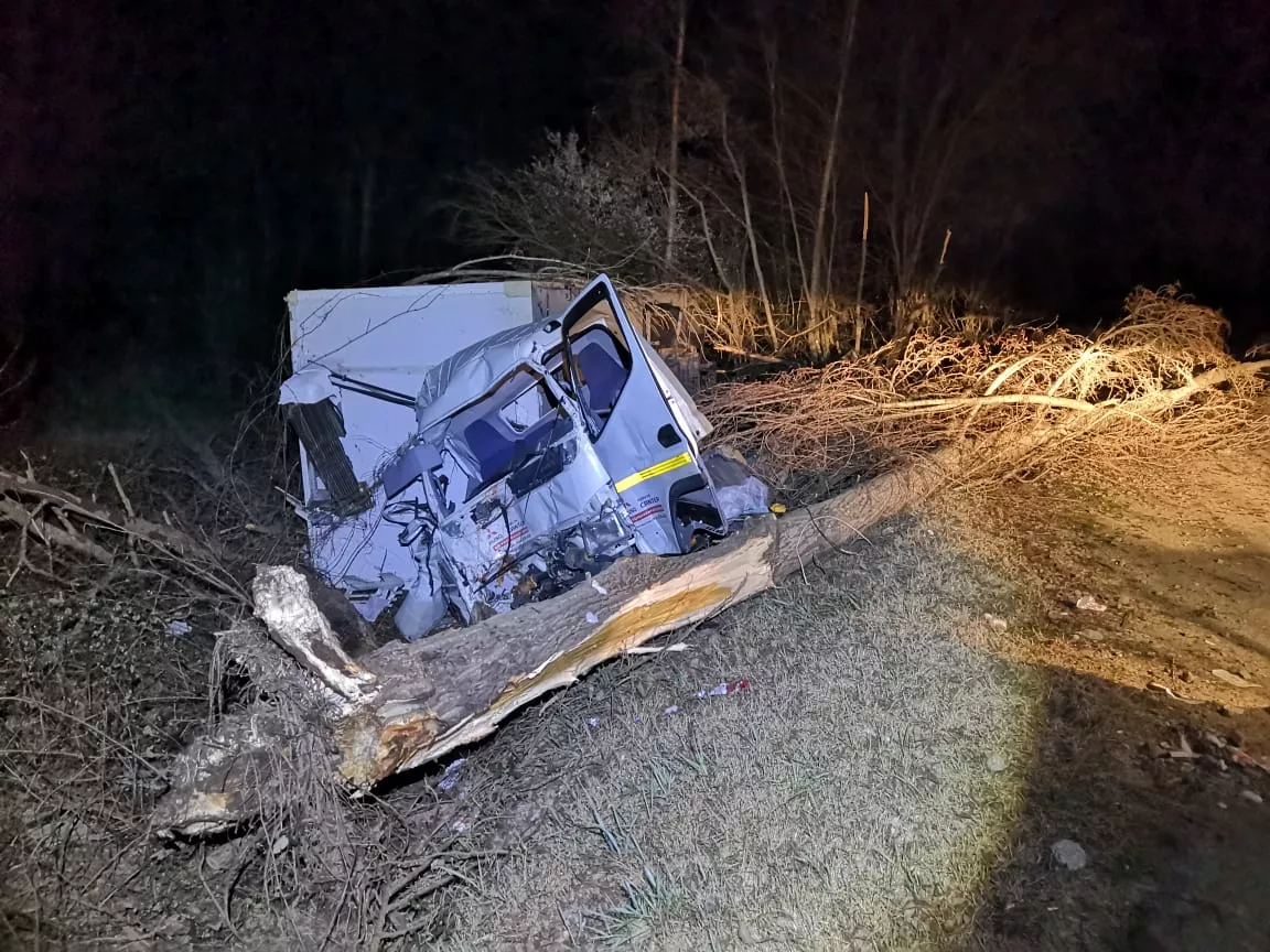 Авария произошла возле поселка Молдовановка. По предварительным данным, 35-летний водитель грузовика Mitsubishi Fuso Canter не справился с управлением, съехал на обочину и протаранил несколько деревьев. После этого большегруз перевернулся.