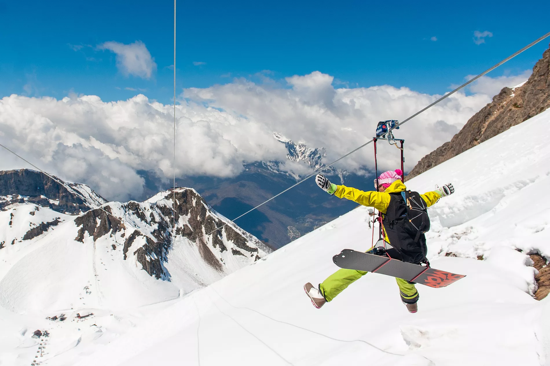 До завершения горнолыжного сезона, которое назначено на 12 мая, зиплайн открыт для лыжников и сноубордистов, а далее — для всех гостей курорта.