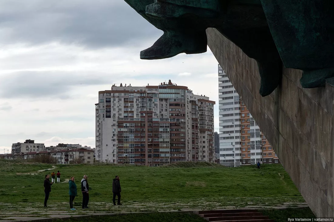 Урбанист обратил внимание на один из самых известных памятников Великой Отечественной войны — мемориал на Малой земле. По словам Варламова, вокруг монумента «помойка и грязь», «с момента распада Советского Союза тут даже сорняки на плитке не выдергивали», «столбы фонарные проржавели и скоро упадут», а «один из важнейших монументов страны выглядит так, словно это какая-то Припять». Кроме того, это место на берегу моря застраивают панельным жильем.