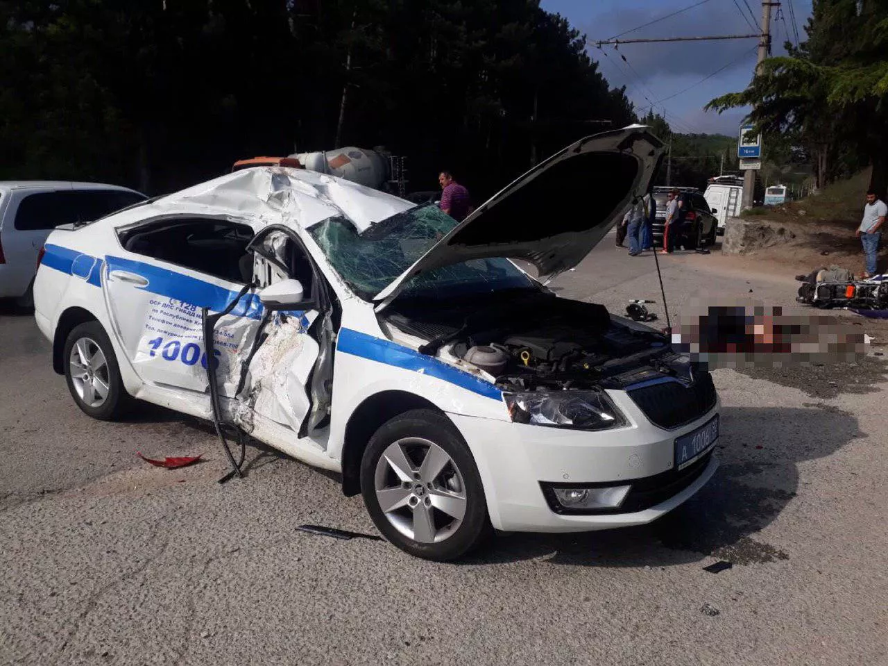 ДТП произошло около 17:00 возле поселка Гурзуф недалеко от горы Аю-Даг. На Южнобережном шоссе мотоцик врезался в патрульную машину ГИБДД. От удара автомобиль перевернулся на крышу.