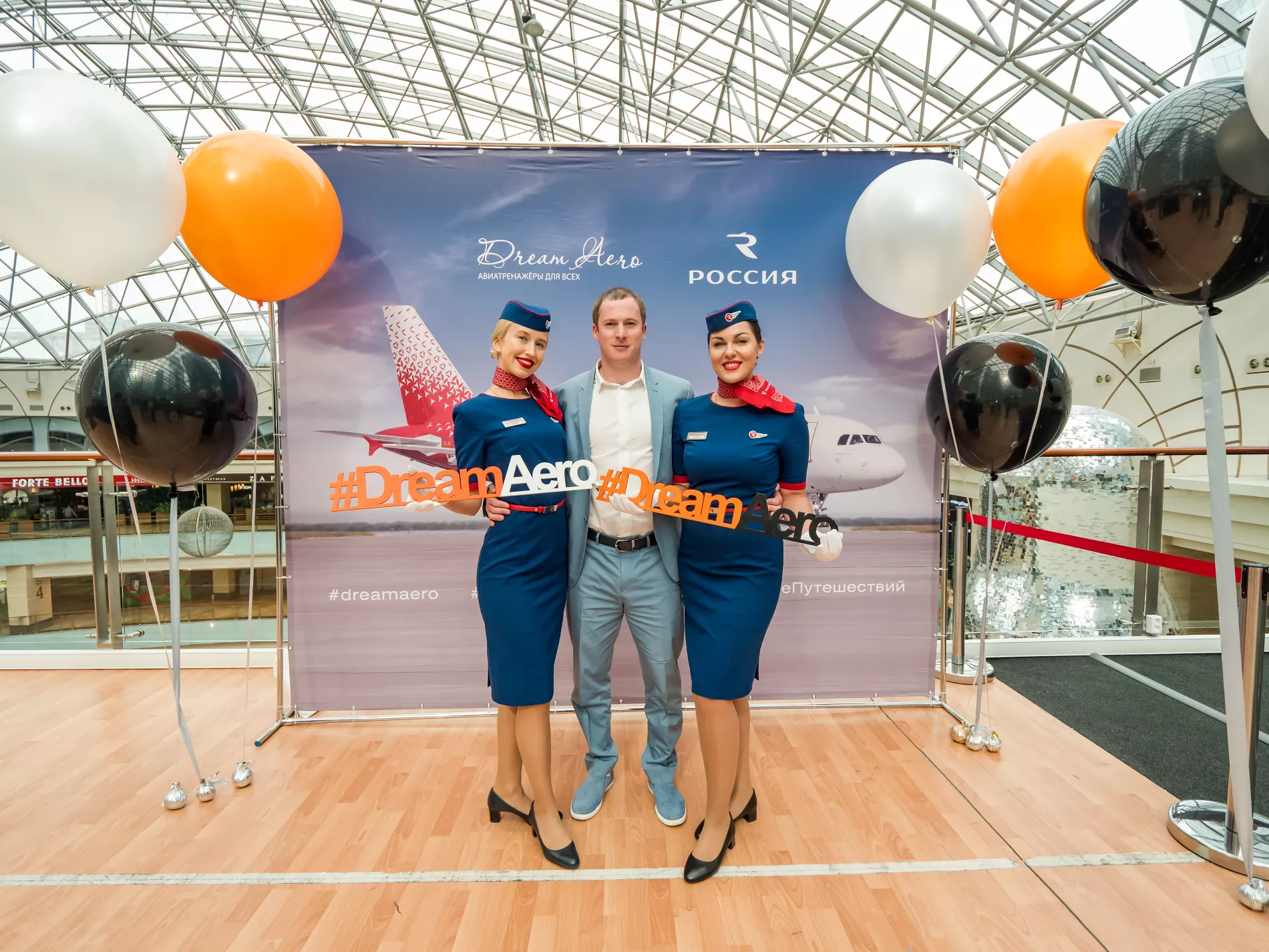 На открытие авиасимулятора в «Афимолл-Сити» организаторы подготовили подарки для участников совместной акции авиакомпании «Россия» и Dream Aero #россиятвойполет. Там разыграли один бесплатный полет на тренажере и сувениры с символикой «России».