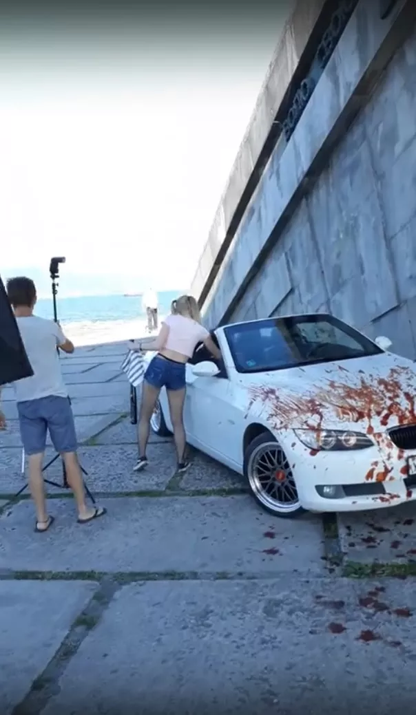 Как писали Юга.ру, группа молодых людей устроила фотосессию у мемориала 28 мая. Случайный очевидец снял происходящее на видео, которое распространили местные паблики и СМИ. На кадрах блондинка в откровенной одежде и с битой в руках позировала на фоне облитого красной краской, имитирующей кровь, автомобиля.
