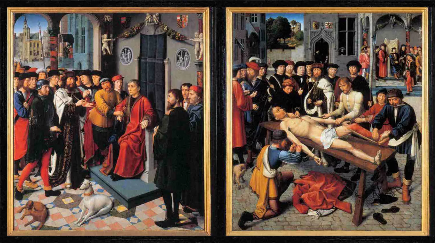 «Суд Камбиса», завершенный в 1498 году, был написан для зала судебных заседаний в ратуше Брюгге, чтобы напоминать о необходимости судить справедливо.