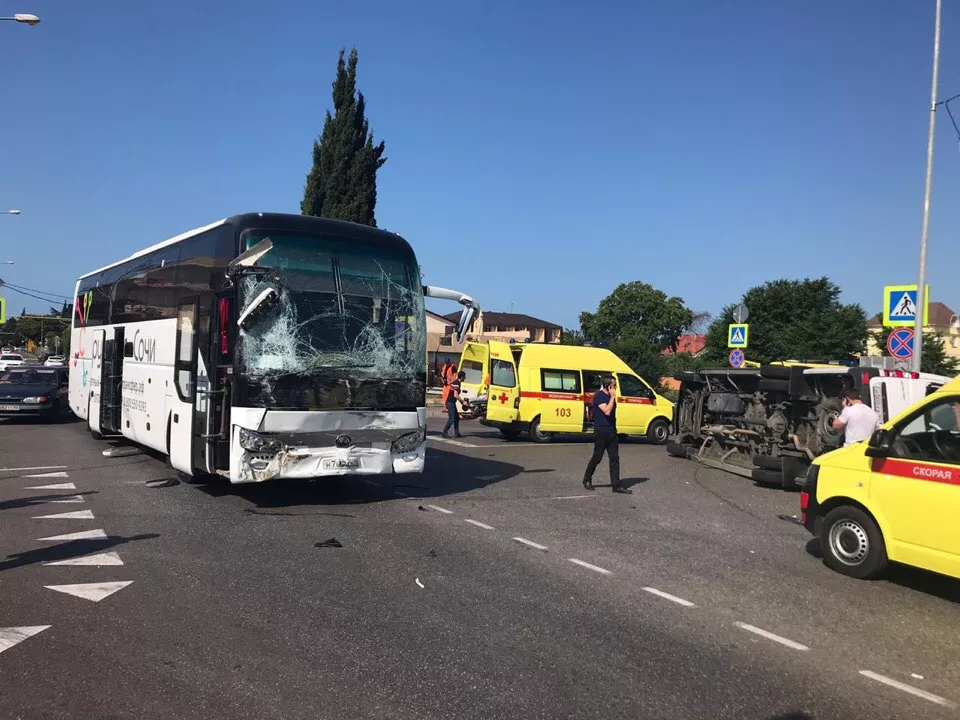 Как сообщали Юга.ру, утром 9 июня в Адлере на пересечении улиц Таврической и Старообрядческой столкнулись экскурсионный автобус Yutong и микроавтобус Mercedes. От удара микроавтобус перевернулся на бок. Изначально сообщалось о 15 пострадавших.