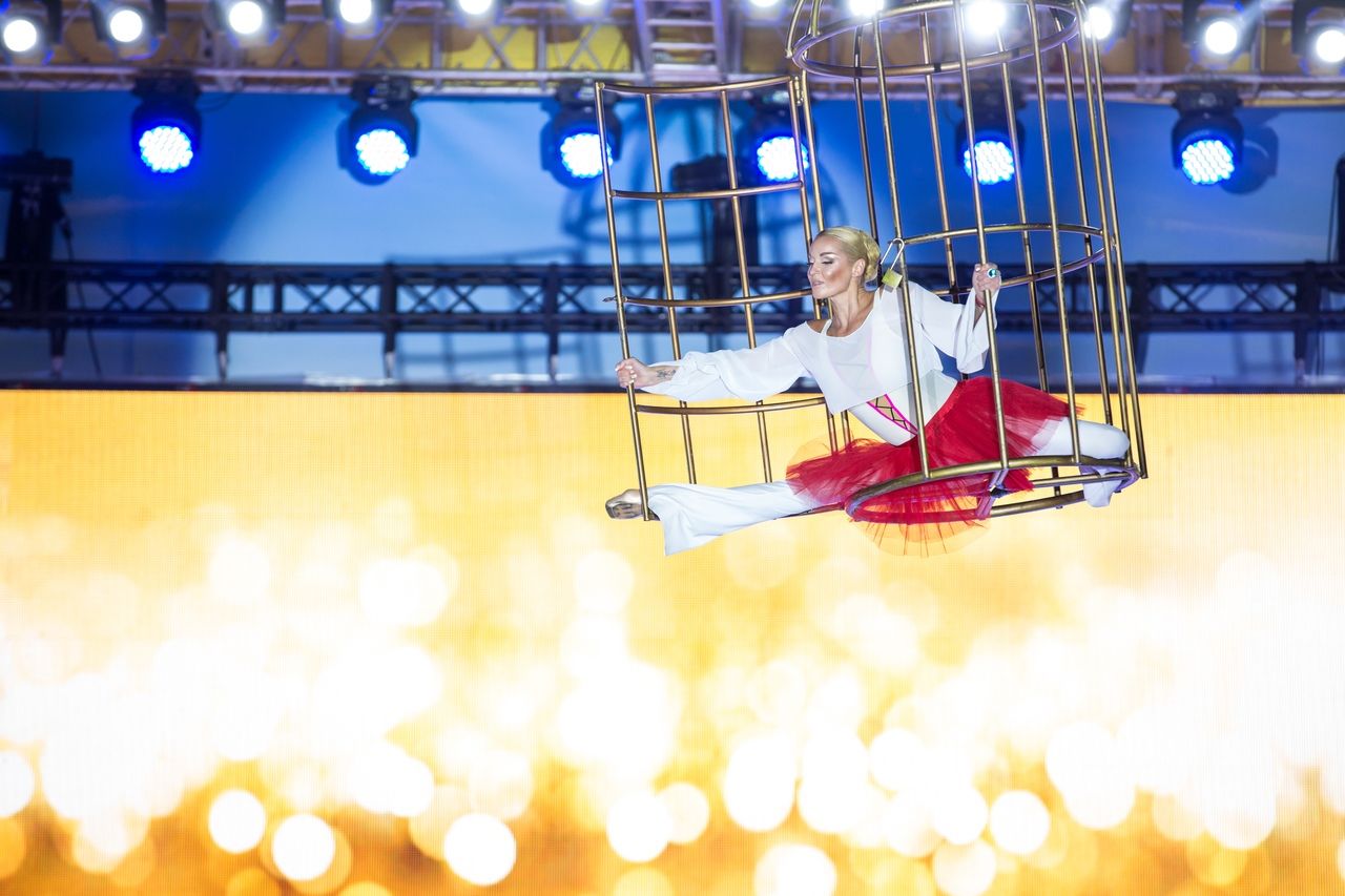 Волочкова в клетке спустилась с высоты 30 метров на сцену на открытии курортного сезона в Анапе