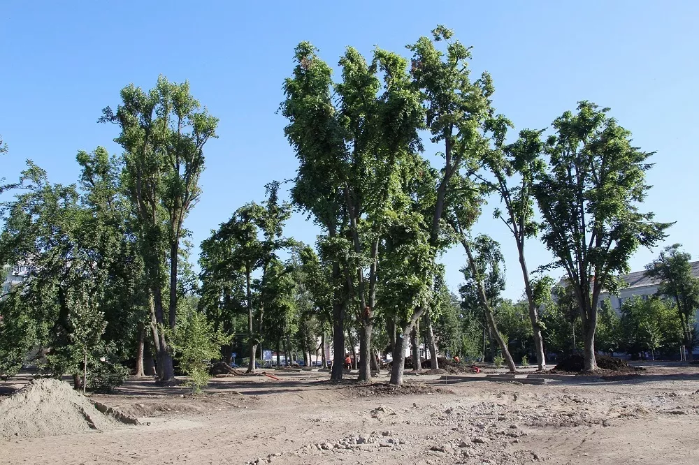 Сейчас там завершают демонтаж старого асфальтового покрытия. Также начали формировать нижний слой для укладки тротуарной плитки на главной аллее. Специалисты уже сделали санитарную обрезку зеленых насаждений, убрали аварийные деревья. Осенью в сквере планируют высадить 50 новых деревьев — лип, сосен, магнолий и черемух, а также больше 4 тыс. новых кустарников. Озеленение завершат высадкой роз на цветочных клумбах.