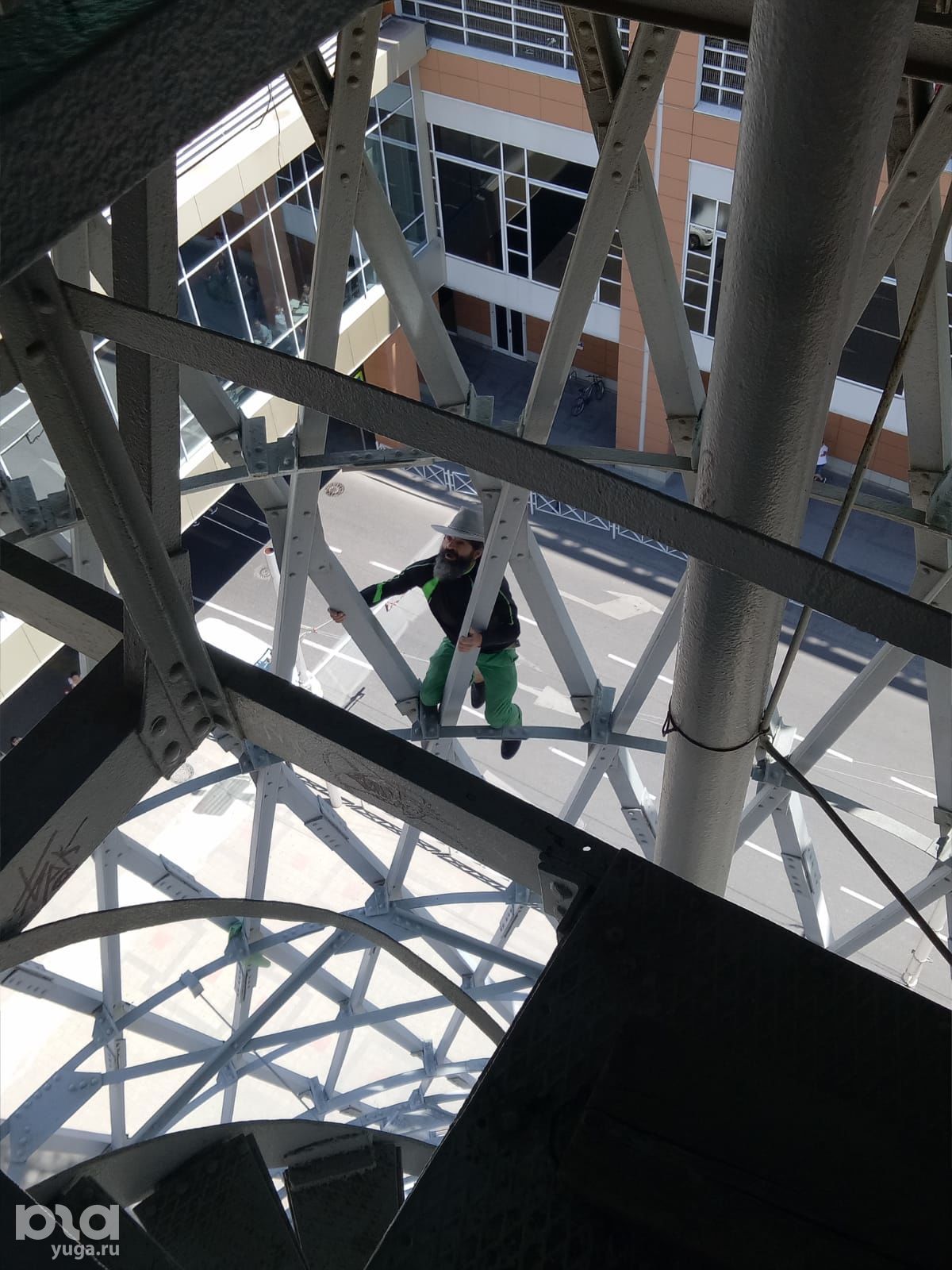 «Когда мы поднимались по лестнице, по внешней стороны башни на нее лез какой-то замечательный персонаж, он висел вниз головой, делал разные трюки. Из-за этого приехали казаки и полиция. Когда спустился, полицейским я сказал, что ходил на выставку. Они, конечно, очень удивились — какая выставка? Для них это был шок», — сказал правнук инженера.