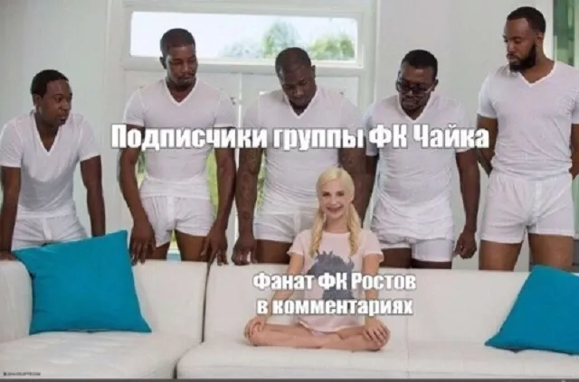 3 июля с официальной страницы «Чайки» опубликовали мем с отсылкой к порнографическому фильму: на картинке изображена белая девушка в окружении темнокожих мужчин.