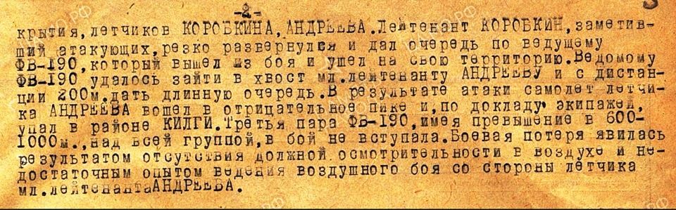 Члены клуба военной археологии Pommiauk 7 июня нашли на месте падения самолета комсомольский билет пилота на имя Константина Михайловича Андреева. Он родился в 1923 году в городе Прохладном Кабардино-Балкарской АССР. На фронт его призвал военкомат Грозного 25 августа 1941 года. В звании младшего лейтенанта летчик служил в 283-м истребительном авиационном полку 13-й воздушной армии. Андреев погиб в воздушном бою 17 сентября 1944 года, сообщил 12 июля Комитет Ставропольского края по делам национальностей и казачества.