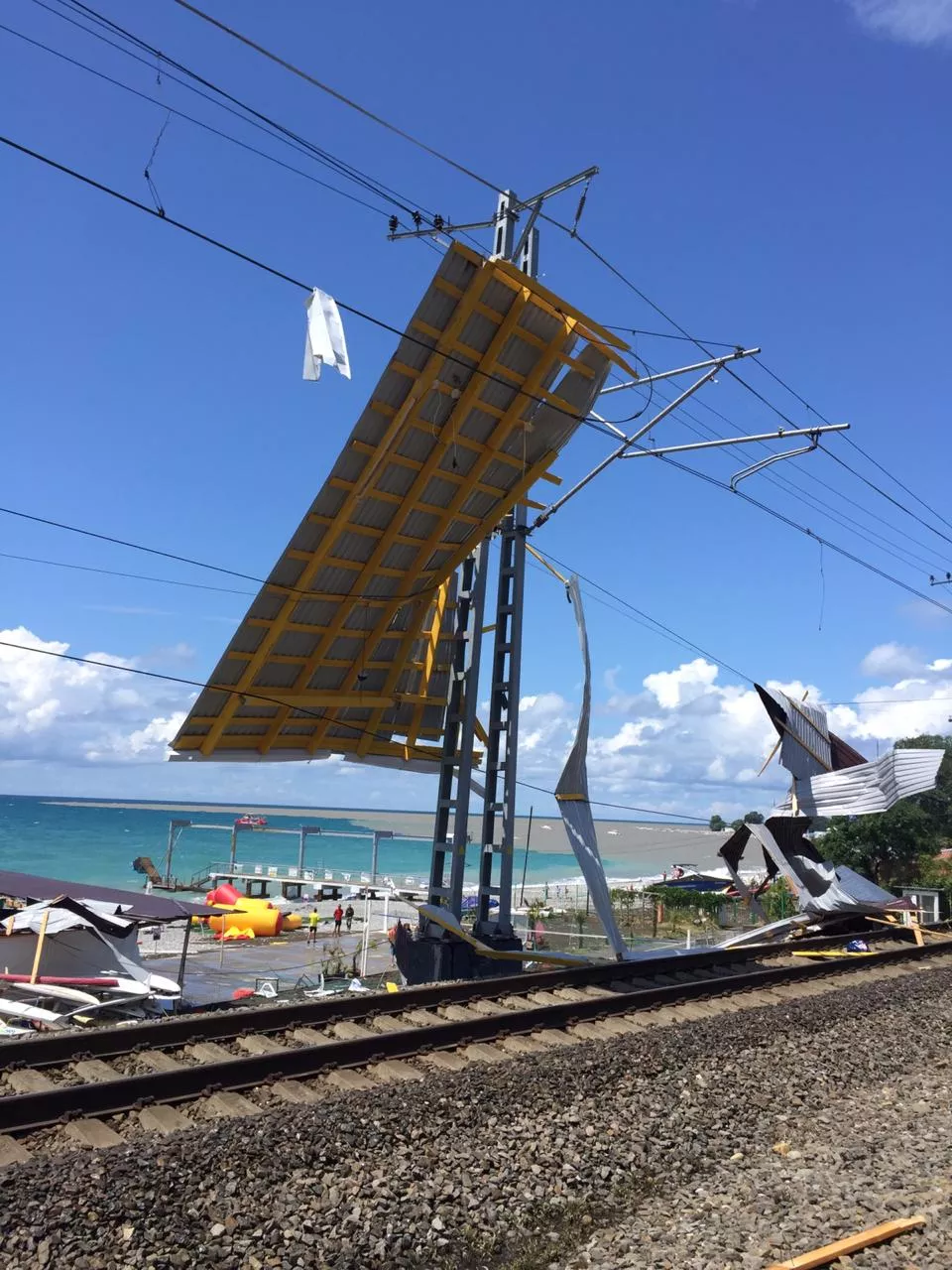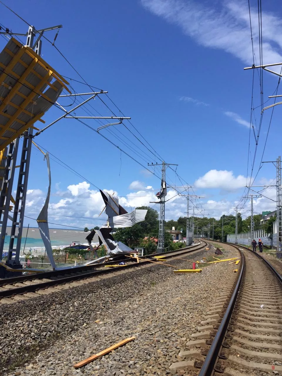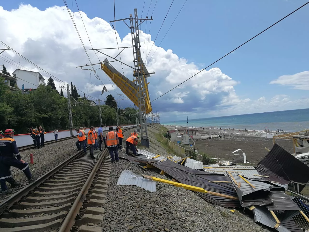 В Сочи сорванная ветром крыша упала на ж/д сеть и травмировала пассажира поезда