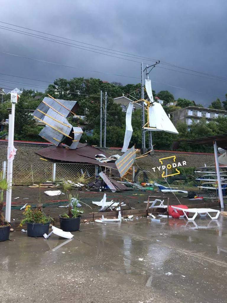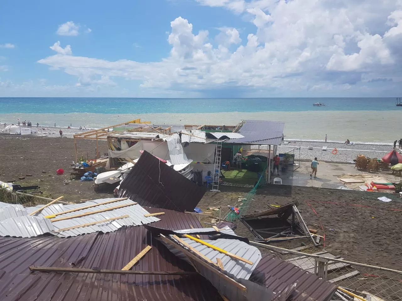 В Сочи 16 июля сильный порыв ветра сорвал крышу с пляжного кафе