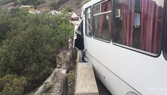 Рейсовый автобус врезался в дорожное ограждение на горной дороге в районе крымского курорта Судак