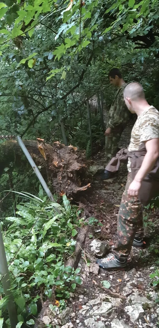 Из-за обильных и продолжительных осадков произошло несколько завалов на участках большого и малого кольца туристических маршрутов.
