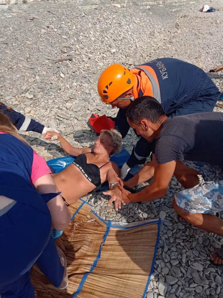 Женщина загорала на берегу моря в районе соснового кемпинга. С большой высоты ей на ногу упал камень размером с два кирпича. В результате отдыхающей раздробило голень.