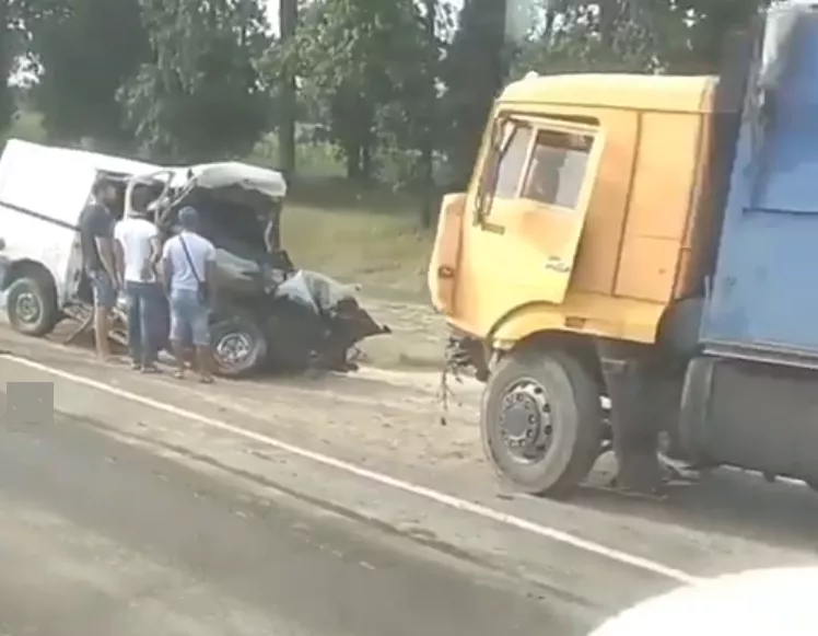 В Темрюкском районе Краснодарского края 21 июля произошло ДТП с участием КамАЗа и микроавтобуса Ford Transit