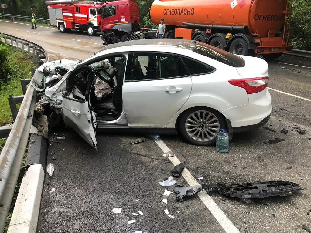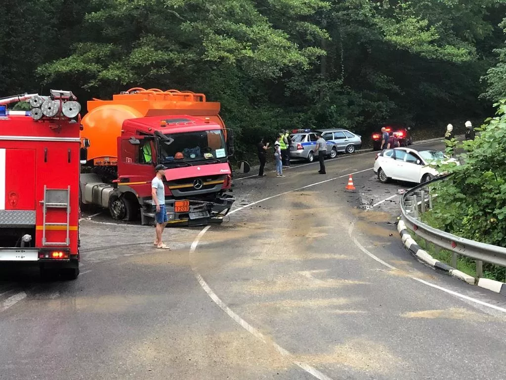 В лобовом ДТП с бензовозом на серпантине в Сочи пострадали четыре человека