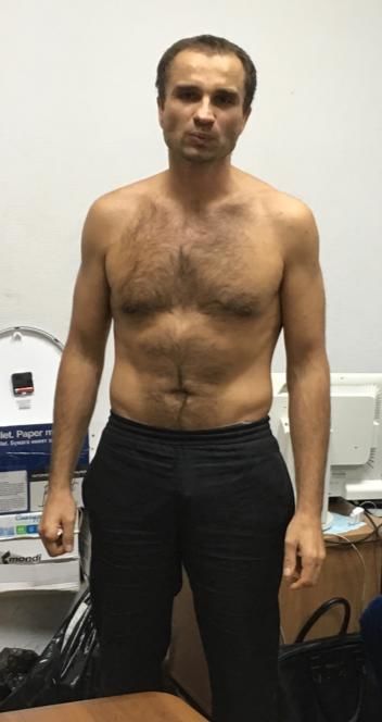 Рос Санникова — 175 см, пострижен коротко, на правой руке отсуствует указательный палец.