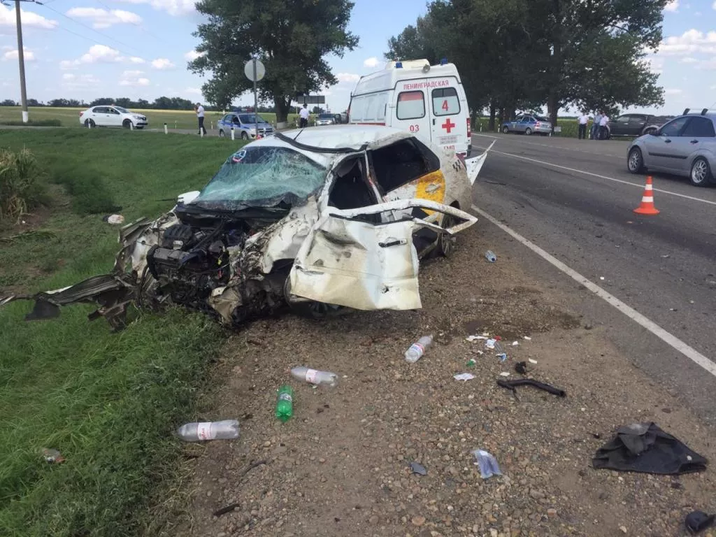 Авария произошла в 14:10 на трассе станица Стародеревянковская — станица Ленинградская — станица Кисляковская. По предварительным данным, 23-летний водитель автомобиля такси Datsun на нерегулируемом перекресте не уступил тягачу Volvo FH с прицепом под управлением 58-летнего мужчины и врезался в него.