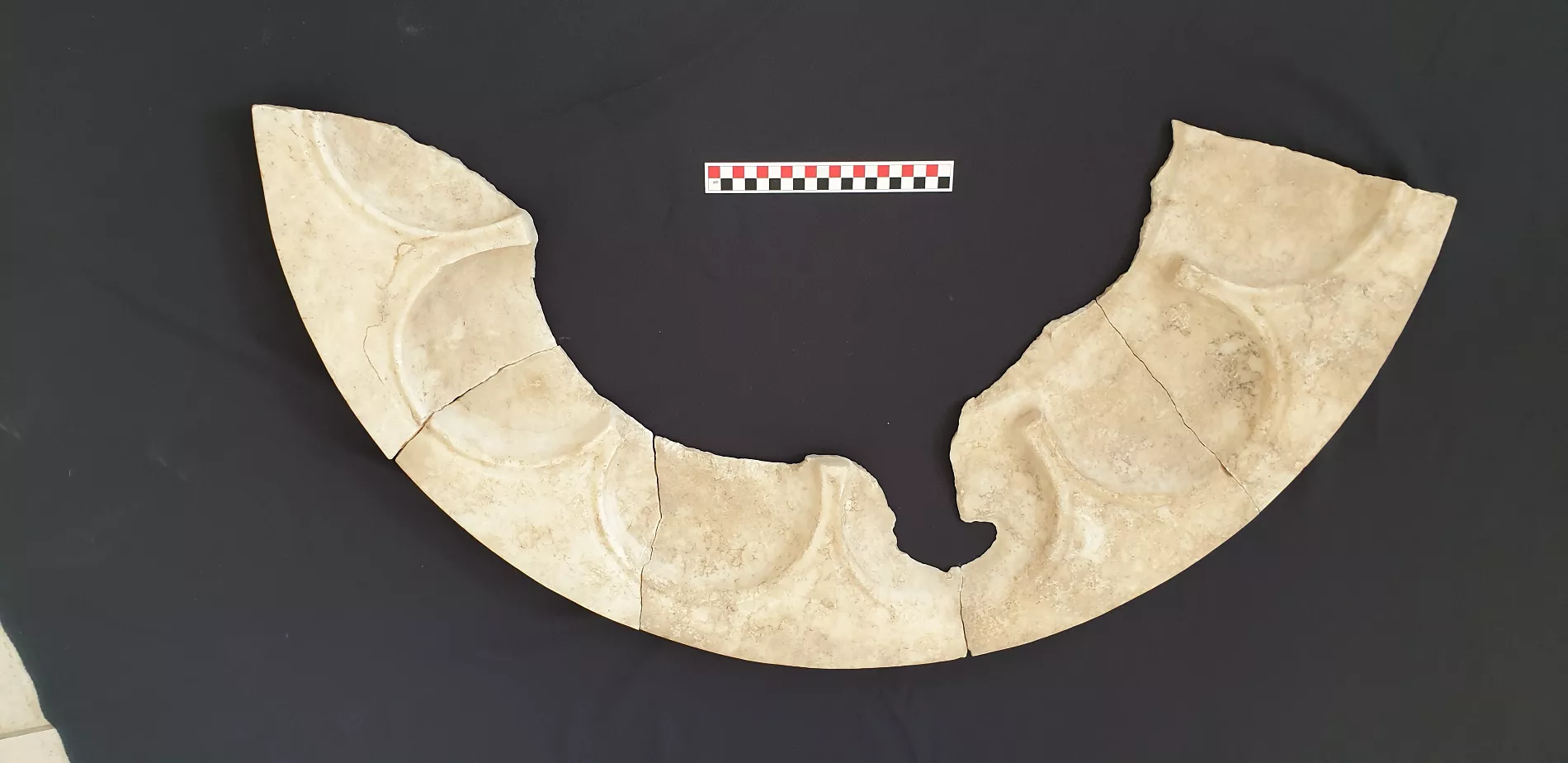 Третьей крупной находкой стали элементы оборудования древнего христианского храма — фрагменты крупной мраморной столешницы и мраморной купели. Артефакты датируются V-VI веками. Столешница могла использоваться в качестве алтаря, стола для подношений, а также во время литургических и поминальных трапез. Подобных целых экземпляров столешниц в мире всего три — из Афин, Рима (хранятся в Метрополитен-музее в Нью-Йорке) и проданный на аукционе Сотбис. Мраморная купель, судя по ее размерам, использовалась для крещения не только детей, но и взрослых.