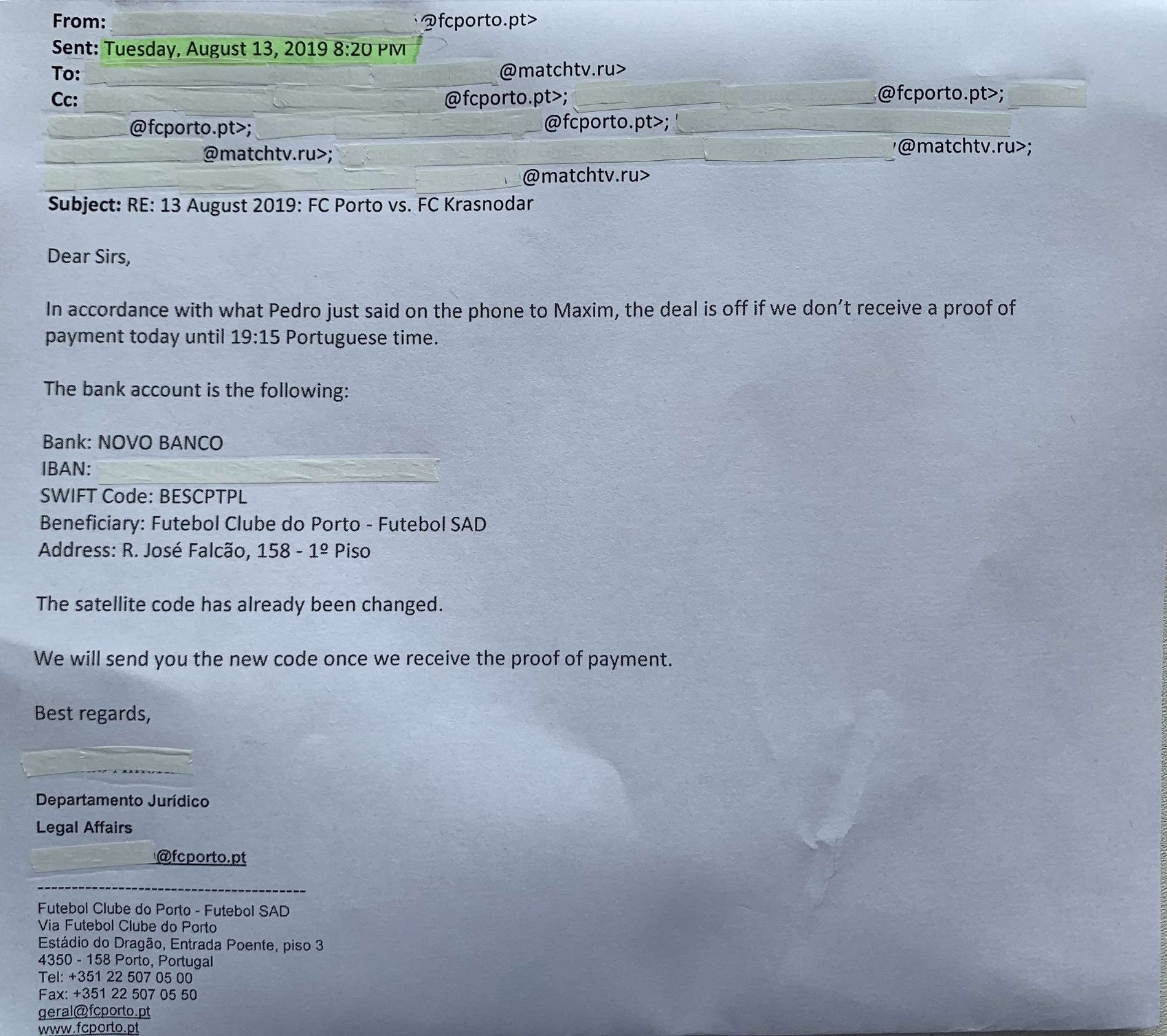 «Порту» и «Матч ТВ» обвиняют друг друга в срыве трансляции игры с «Краснодаром». В ход пошли сканы переписки
