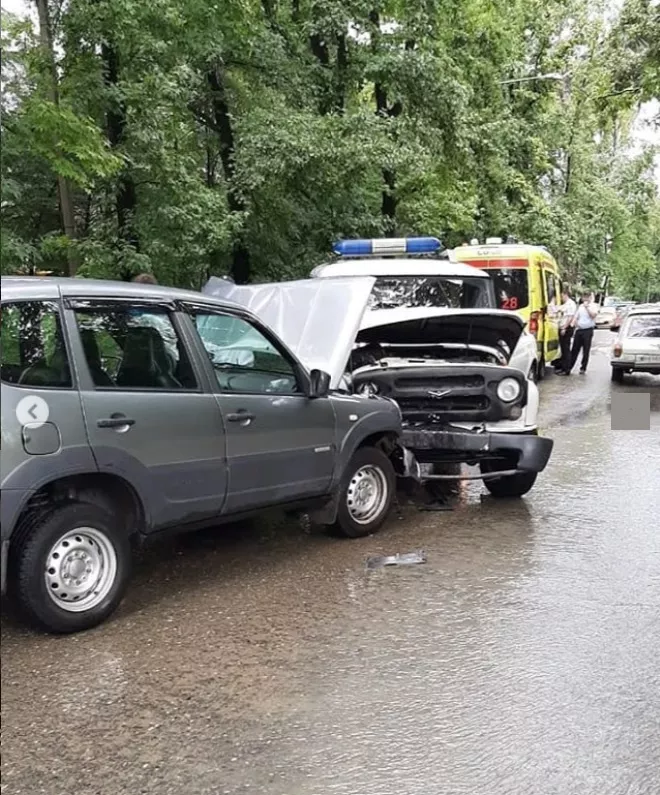 В Сочи внедорожник врезался в полицейский УАЗ, двух сотрудников доставили в больницу