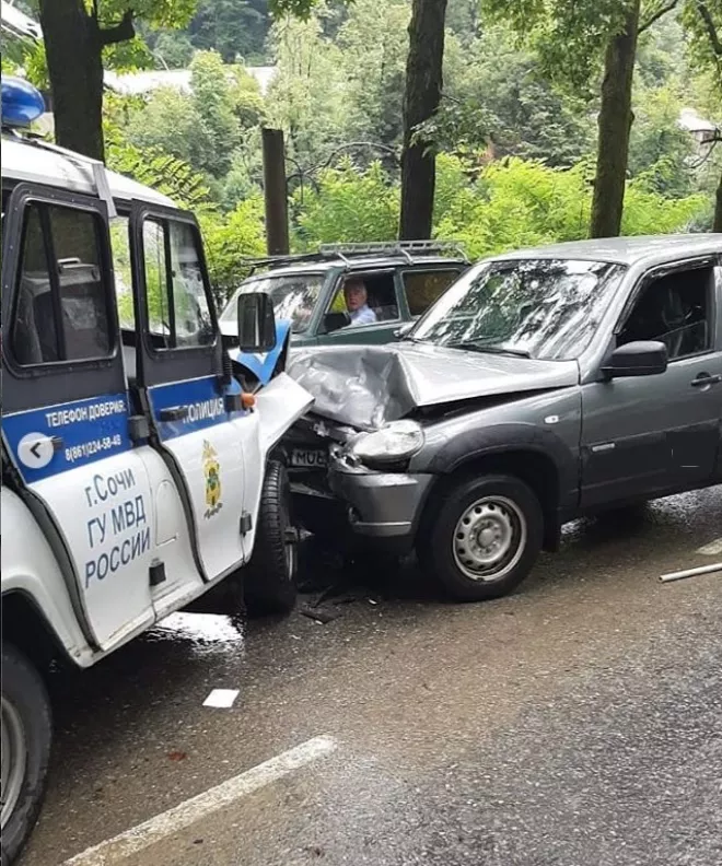 В Хостинском районе Сочи 17 августа произошло ДТП с участием полицейского УАЗа и внедорожника