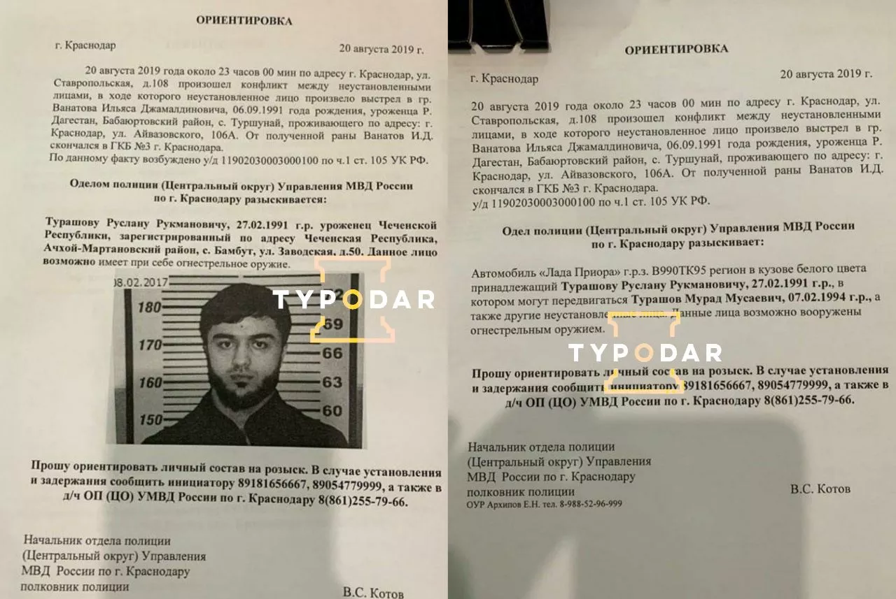 Участников инцидента — уроженцев Чечни 28-летнего Руслана Турашова, 25-летнего Мурада Турашова и еще нескольких человек — объявили в розыск, они скрылись с места происшествия на белой Lada Priora, которую запечатлели камеры видеонаблюдения. Позже стало известно, что нескольких человек по этому делу задержали, но скрывшихся на «Приоре» мужчин продолжали искать.