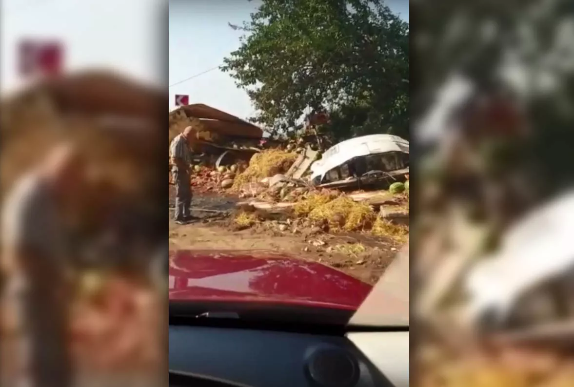 Фура с арбузами перевернулась на трассе в Сочи и устроила многочасовую пробку
