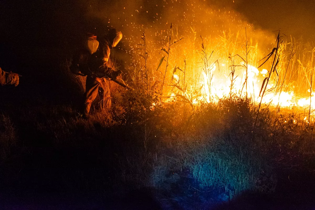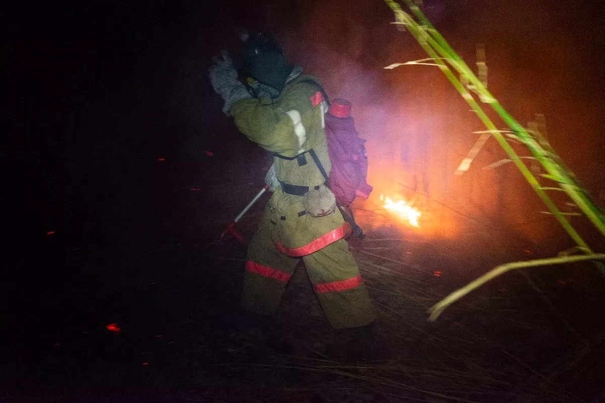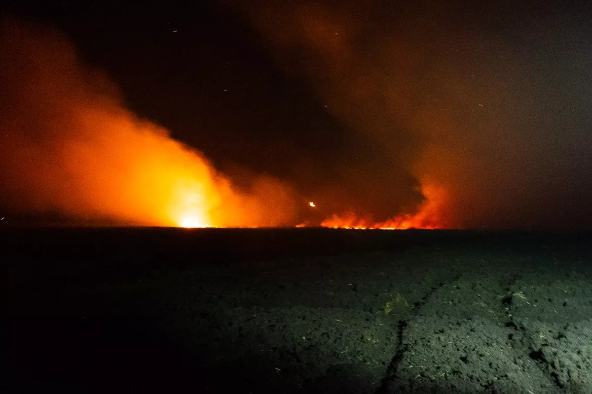 Зарево от пожара на хуторе Могукоровка заметили около 20:00 25 августа с крыши базы добровольных пожарных в Приморско-Ахтарском районе. После этого отряд выехал на разведку, вызвал МЧС и начал тушить огонь.