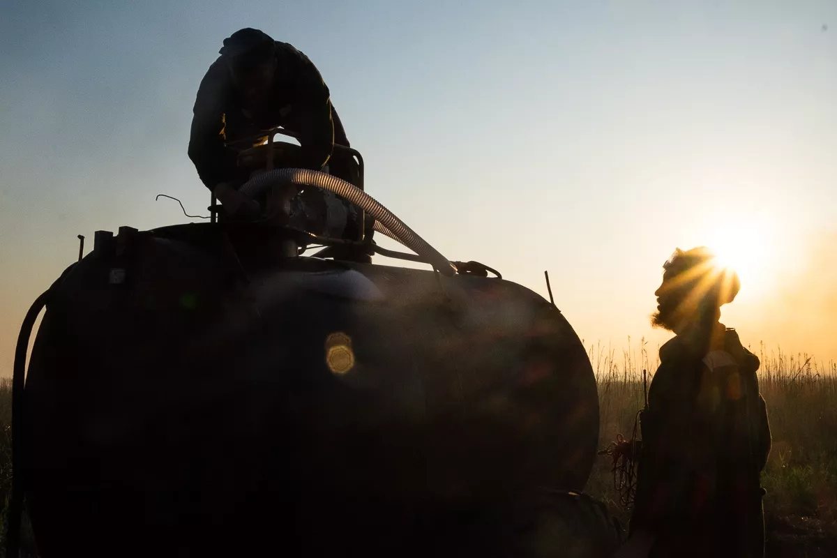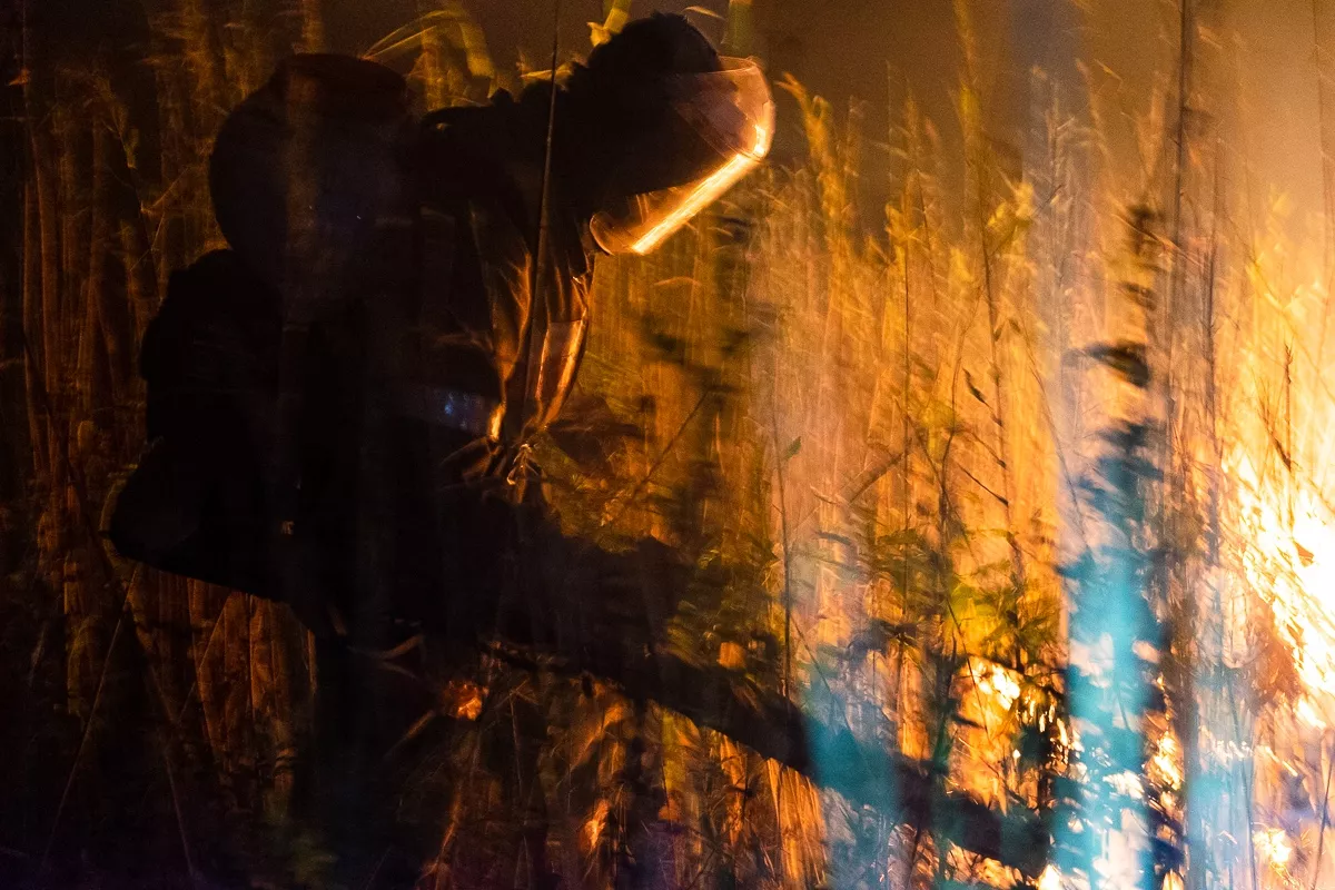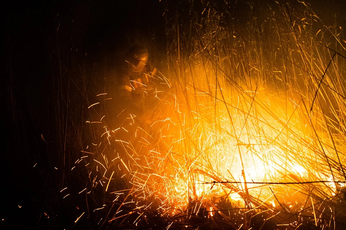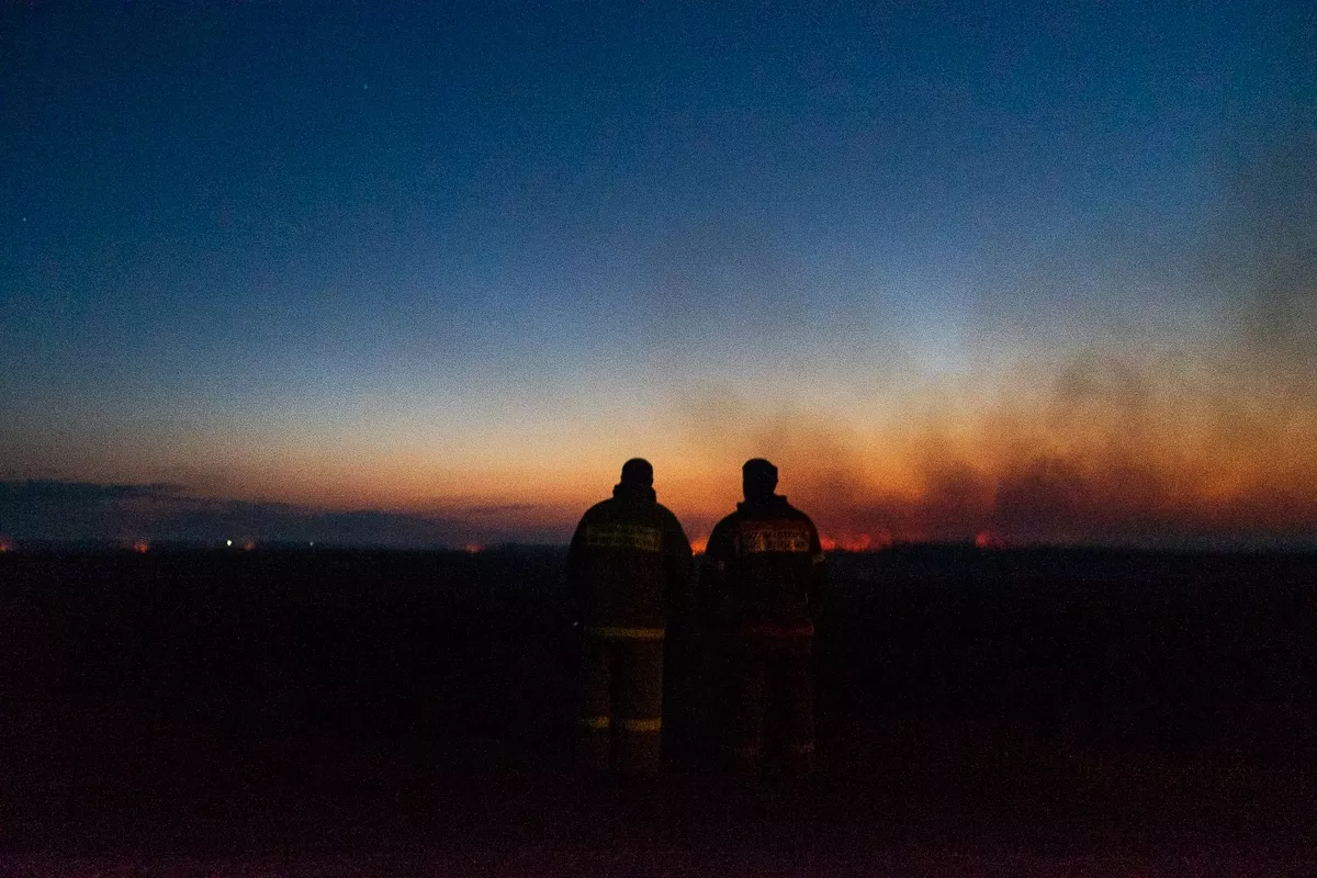 Зарево от пожара на хуторе Могукоровка заметили около 20:00 25 августа с крыши базы добровольных пожарных в Приморско-Ахтарском районе. После этого отряд выехал на разведку, вызвал МЧС и начал тушить огонь.