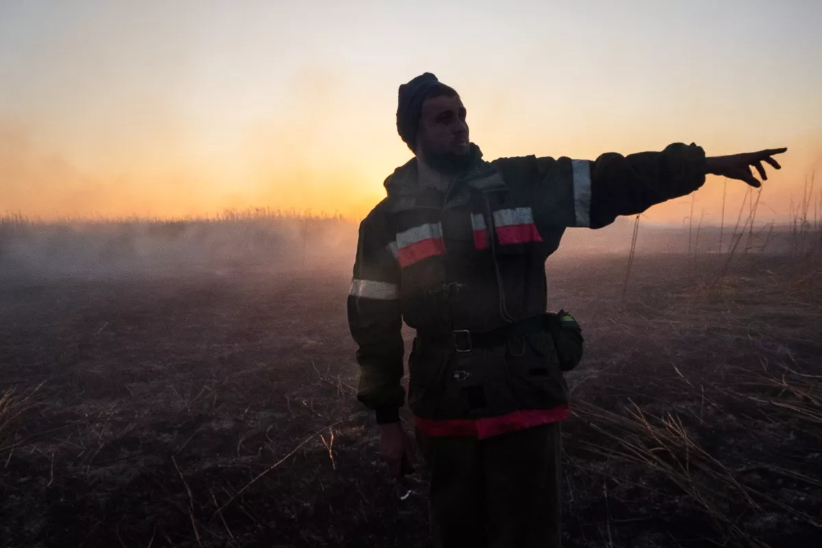 «Добровольные пожарные Кубани» рассказали, что в Калининском районе с 25 августа пытаются потушить природный пожар