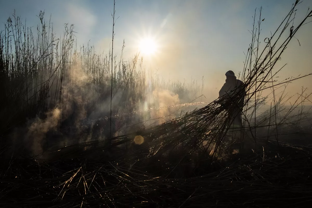 Однако 28 августа в 13:39 поступило повторное сообщение о горении камыша на площади 300 кв. метров. Спасатели контролируют обстановку, угрозы распространения пожара нет.