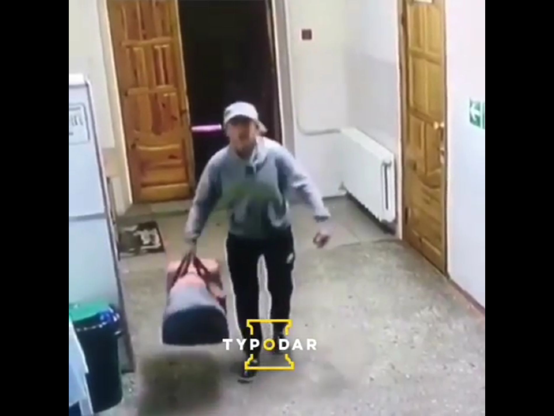 В соцсетях опубликовали записи с камер видеонаблюдения, на которых женщина с переносной люлькой заходит в помещение медучреждения, оставляет люльку на кушетке и спешно уходит.