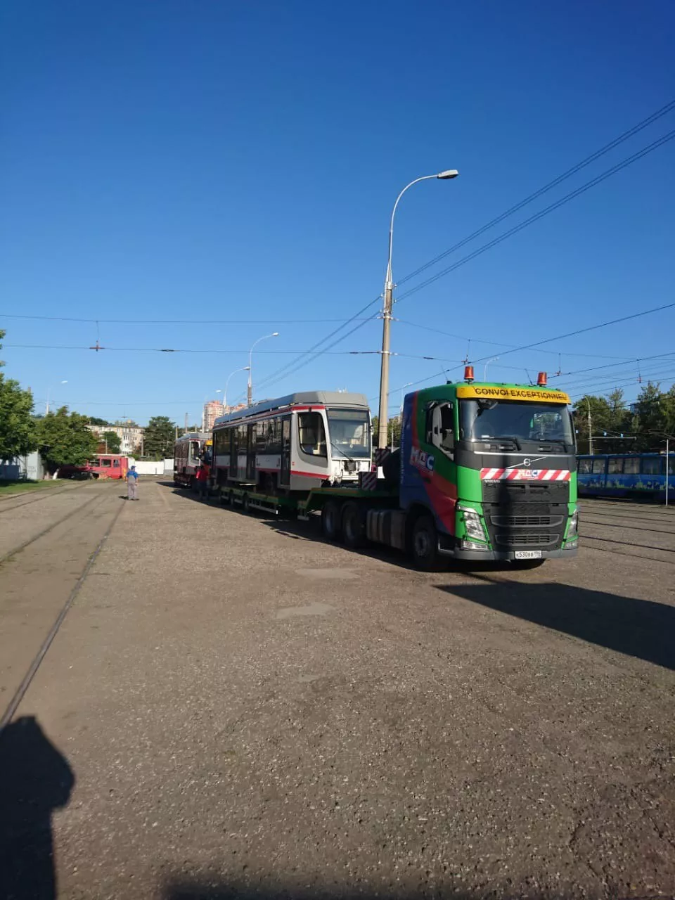 В Краснодар в ночь с 31 августа на 1 сентября привезли еще два новых трамвая с Усть-Катавского завода