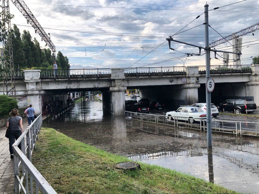 В Краснодаре после залпового ливня встали трамваи и троллейбусы, подтопило дороги
