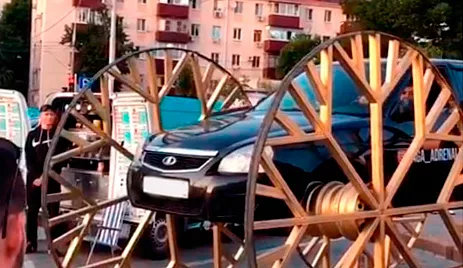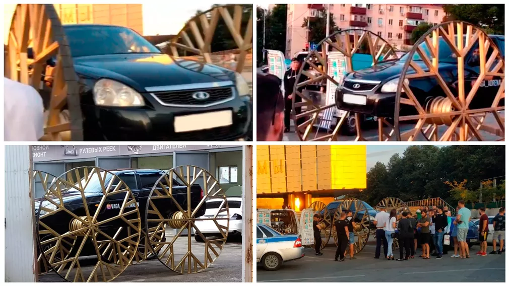 На улицы столицы Кубани выехала Lada Priora с трехметровыми колесами