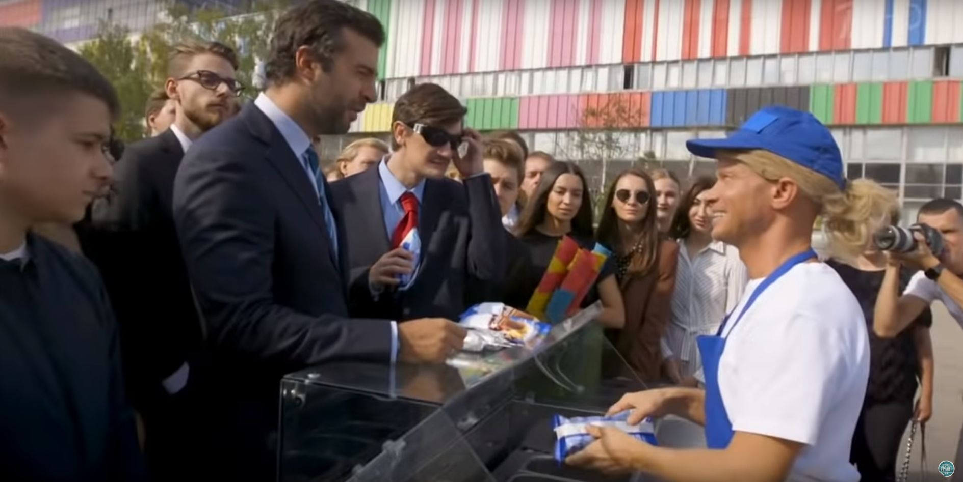 Хрусталев предложил Урганту и Гудкову краснодарское и вологодское мороженое, а когда те попытались расплатиться пятитысячной купюрой, ответил: «Ой, денег не надо. До вас мужчина был и все оплатил».
