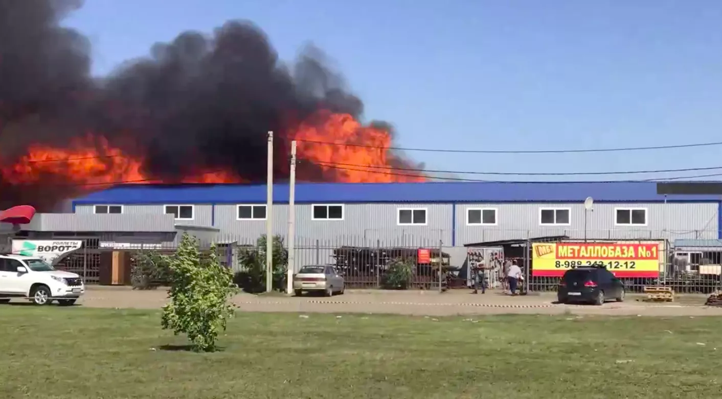 Пожар начался в 10:44 возле складских помещений на улице Выселковской. Позже спасатели установили, что загорелись деревянные поддоны на открытой территории.