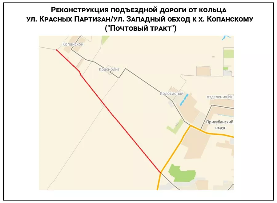 Мэр Краснодара Евгений Первышов встретился с жителями шести пригородных населенных пунктов — хуторов Копанского, Восточного и Черников, поселков Колосистого, Нового и Краснолит. На встрече в Копанском глава города сообщил, что в конце 2019 года будет готов к реализации проект новой трассы на месте «Почтового тракта» — подъездной дороги от кольца на пересечении улицы Красных Партизан и Западного обхода к Копанскому.