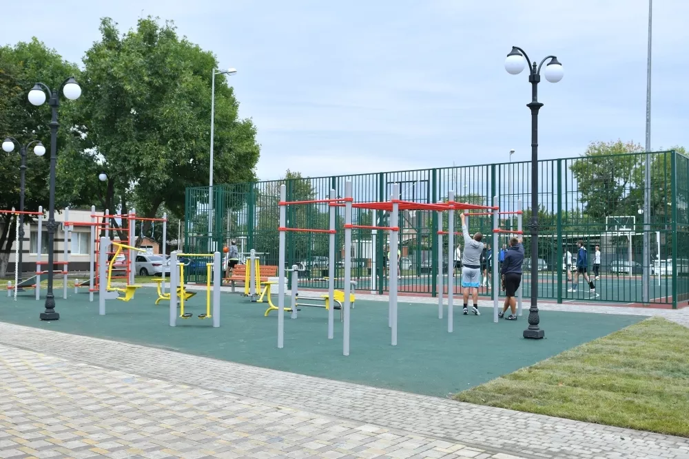 Глава города отметил, что до того, как здесь появилась зеленая зона, на этом месте стояли ржавые гаражи. Всего в новом сквере сделали новые пешеходные дорожки, высадили клумбы и газон с автоматической системой полива, установили 39 лавочек и 37 светильников, оборудовали детскую игровую, волейбольную и баскетбольную площадки.
