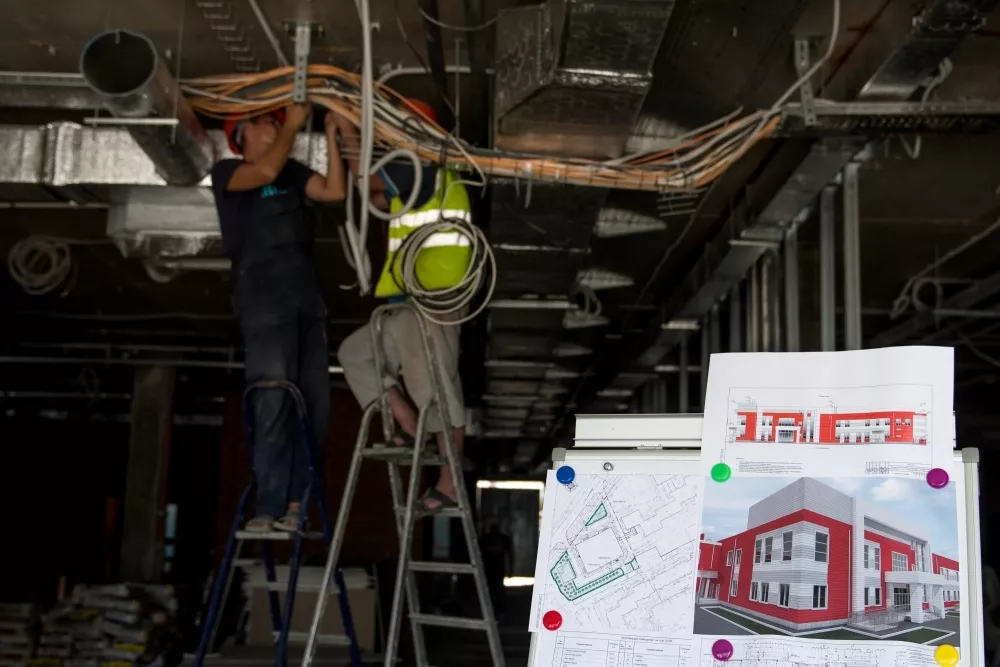 Что сейчас с бассейном? Ежедневно на стройке работает не менее 60 человек, реконструкция готова уже на 53%. Строительство по-прежнему планируют завершить до конца года, тогда же начнут формировать первые группы для тренировок и тренерский штат. С начала июня новый подрядчик полностью демонтировал все устаревшие и не соответствующие проекту конструкции. Сейчас в комплексе завершают установку окон. Кроме того, на 60% смонтировали кровлю, внутренние инженерные сети и обустроили чаши бассейна.