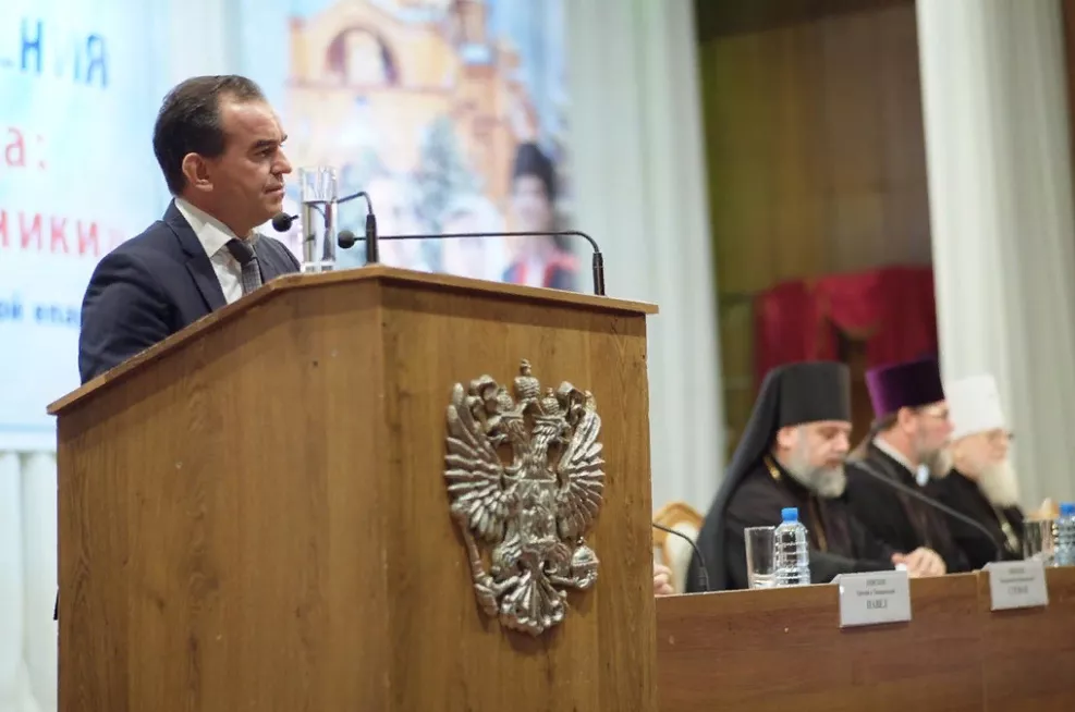 В Краснодаре стартовали очередные, XXV Всекубанские духовно-образовательные Кирилло-Мефодиевские чтения. Это гуманитарная конференция, посвященная религии, культуре и образованию, в ней регулярно принимают участие краевые и казачьи власти, а также педагоги, общественные деятели и православные священники. На открытии чтений выступил глава края Вениамин Кондратьев.