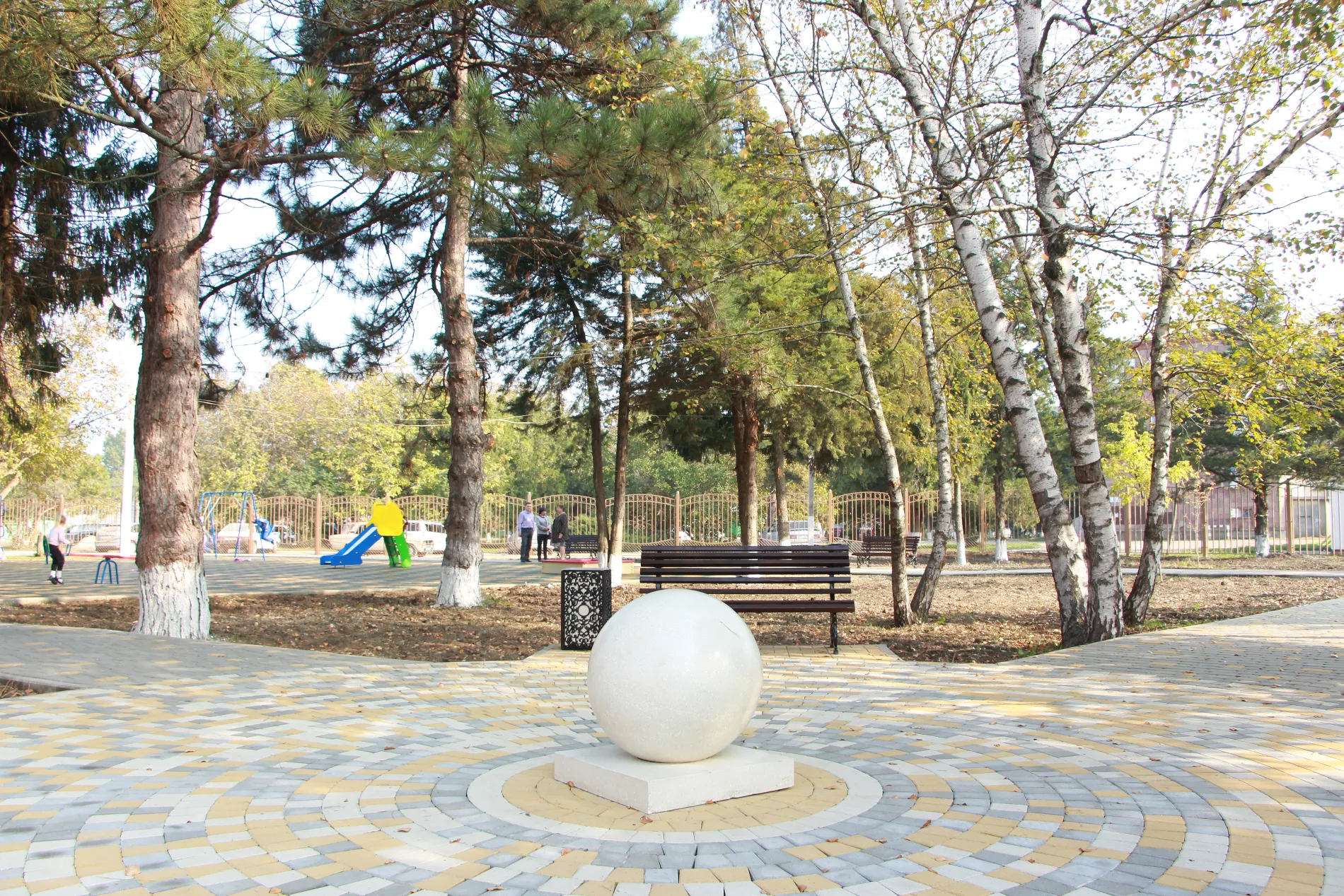 В парке, находящемся в центре станицы, установили детскую игровую и спортивную площадки, беседку для отдыха, лавочки. Также в парке высадили 116 деревьев, 40 кустарников, сотни цветов и уложили новую тротуарную плитку.