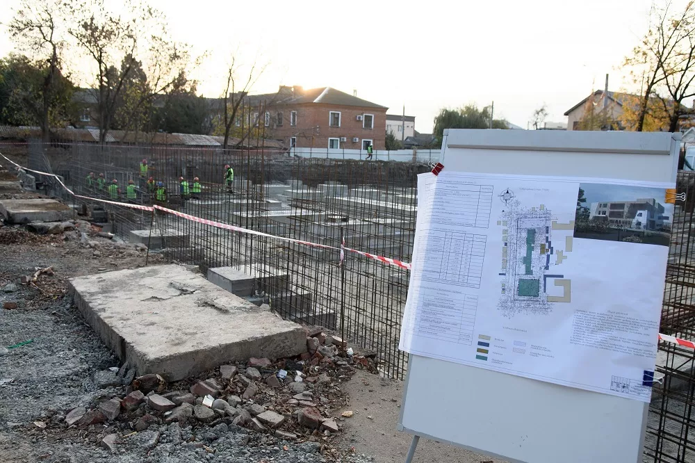 Сейчас строители полностью завершили демонтаж старых и аварийных зданий, вырыли котлован, провели обратную засыпку грунта и его послойное уплотнение и приступили к армированию и бетонированию фундамента. Его планируют закончить к середине ноября, после чего начнутся работы по устройству перекрытия первого этажа. Площадь нового корпуса составит более 4 тыс. кв. метров.