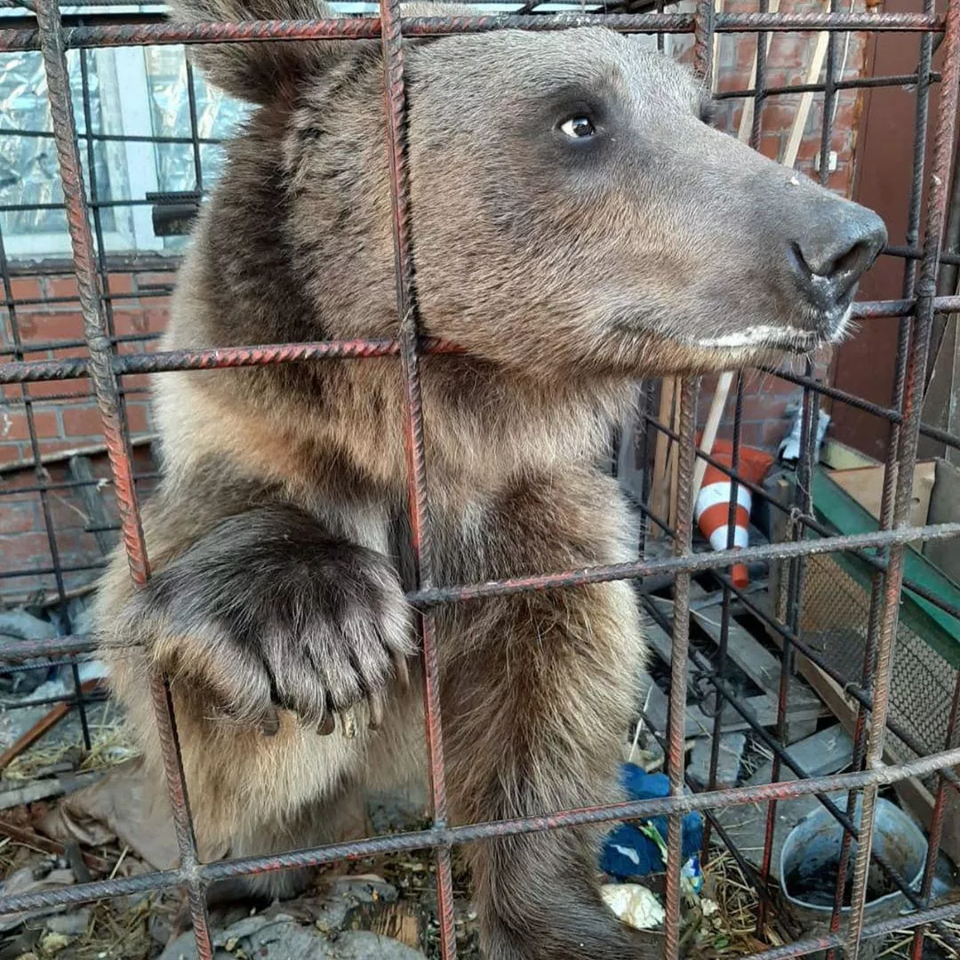 В Краснодаре решается судьба медведя, который живет в клетке в одном из дворов