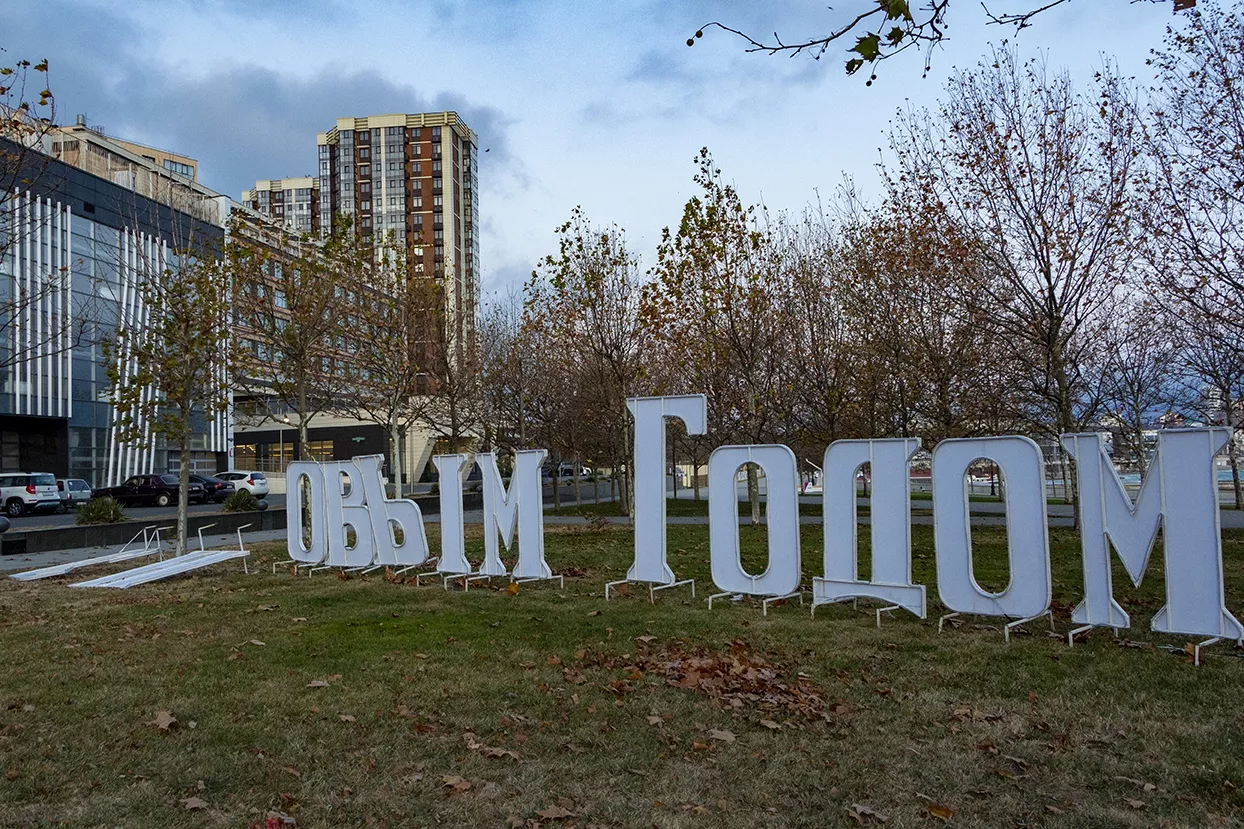 В соцсетях жители Новороссийска опубликовали фотографии с перевернутым ларьком и поваленной частью стелы «С Новым годом».